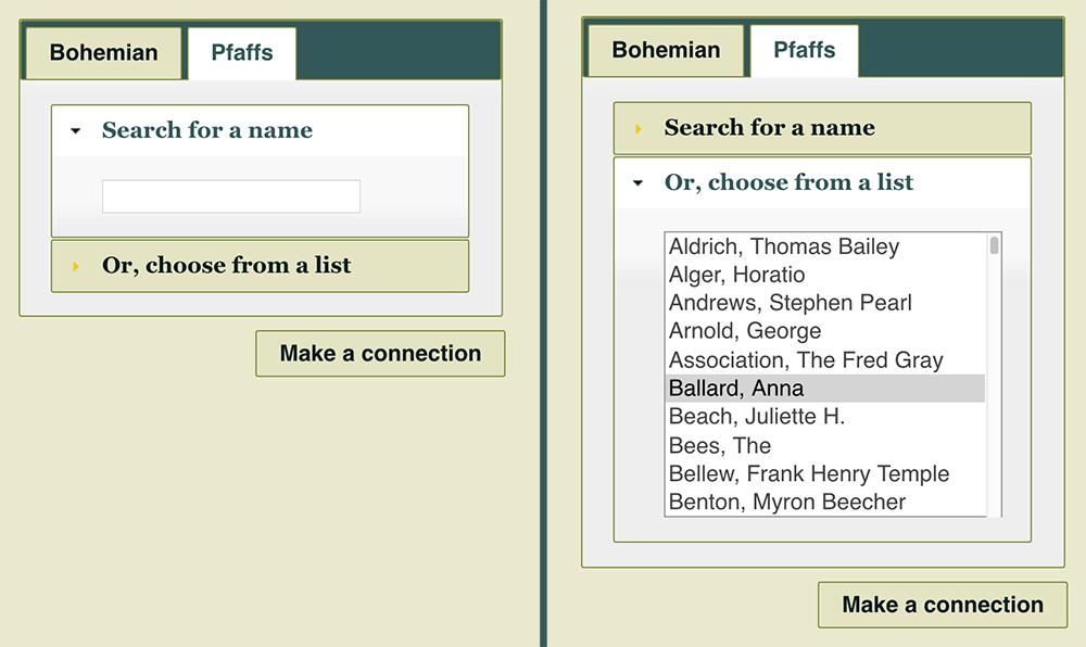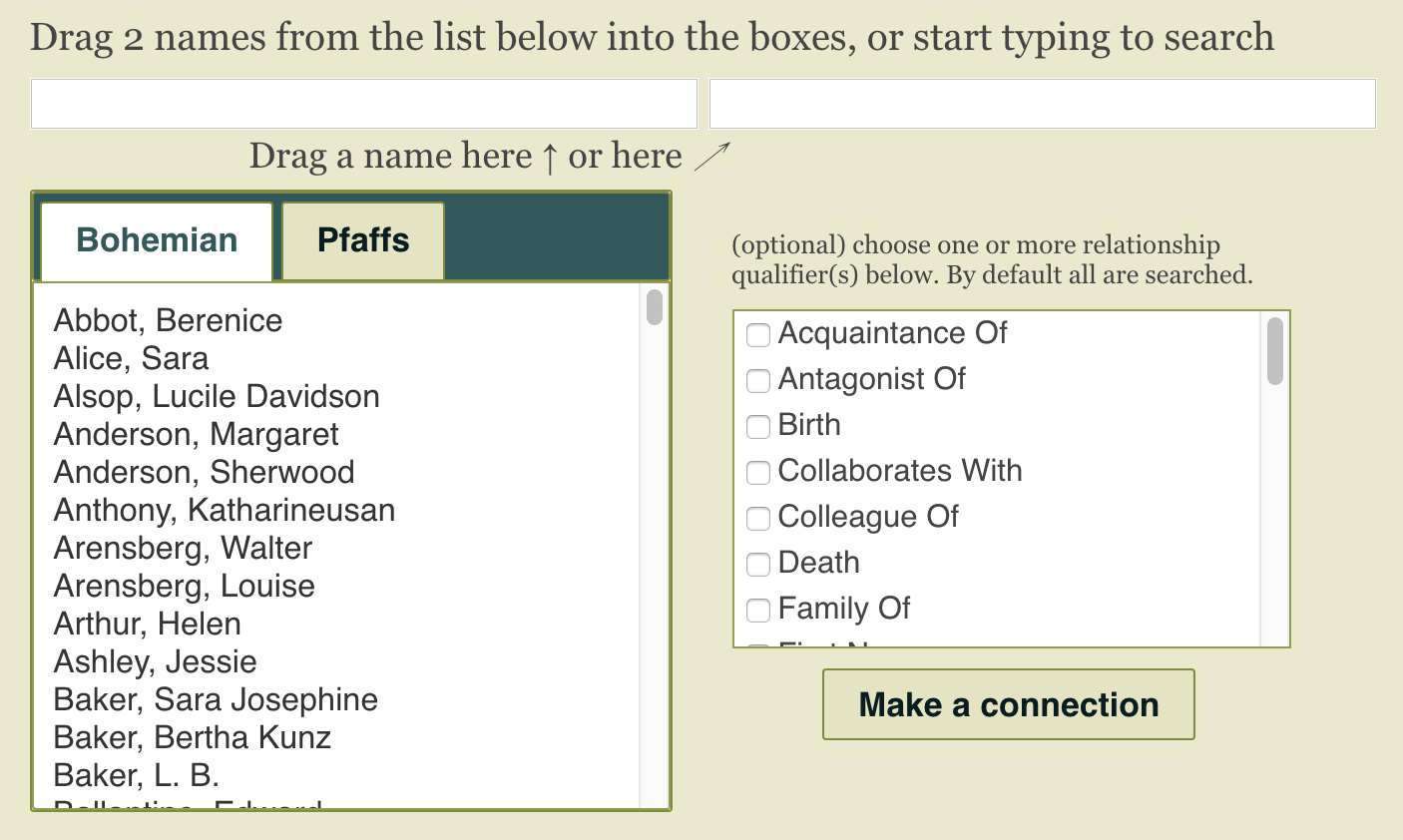 The video below demonstrates the process and interface for choosing one name and finding connections.